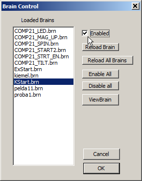 Jelöljük ki a KStart.brn-t és pipáljuk ki az Enabled-et! Ezzel engedélyezzük a kijelölt Braint. Ha tiltani akarjuk, kattintással eltávolíthatjuk a pipát.