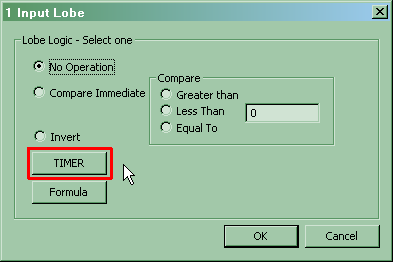 Lehetőségünk van a lebenyekben időzítőket is használni. Ezeket késletetésre, ütemezésre, vagy akár folyamatos négyszögjel kiadására is felhasználhatjuk.