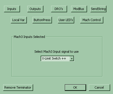 A belső változók (V0-V99) bitjei is megadhatóak bemenetként. De ezek használata a Mach3 teljes összeomlását okozza! Ha a Brain már előbb engedélyezve volt és futott, mielőtt egy váltózó bitjére utaló bemenetet beleszerkesztettünk, akkor emiatt a Mach3 már el sem fog indulni!