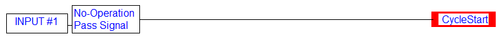 - Zárjuk a lebenyt a fejre állított zöld T-re hasonlító jellel. A lezárásnál a ButtonPress (Gomb megnyomása) alatt válasszuk a CycleStart-ot!